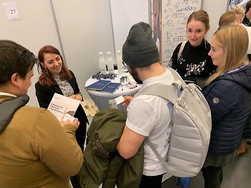 JU-studenter träffar representater från Gartner på Nextstep-mässan.