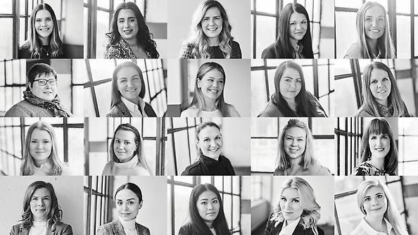 På bilden är ledarförebilderna som har chansen att bli Årets unga ledande kvinna 2021. Av dessa 20 nominerade finns sju före detta studenter från Jönköping University (JU).