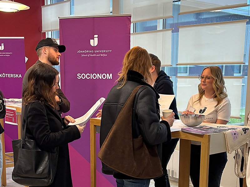 På Jönköping International Business School (JIBS) stod engagerade studenter och medarbetare redo att dela med sig av sina erfarenheter av utbildningar, studentliv och vardagen på campus. Studievägledare gav stöd i studievalet, samtidigt som International Office informerade om möjligheterna att studera utomlands under utbildningen.