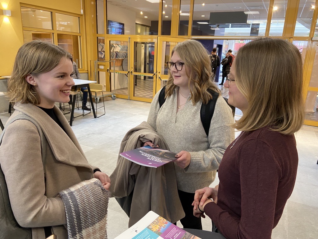 På plats på fackhögskolorna fanns studievägledare som hjälpte till med frågor om behörighet och även personal från International Office som svarade på frågor om utlandsstudier, ansökningsförfarandet och praktik för internationella studenter.