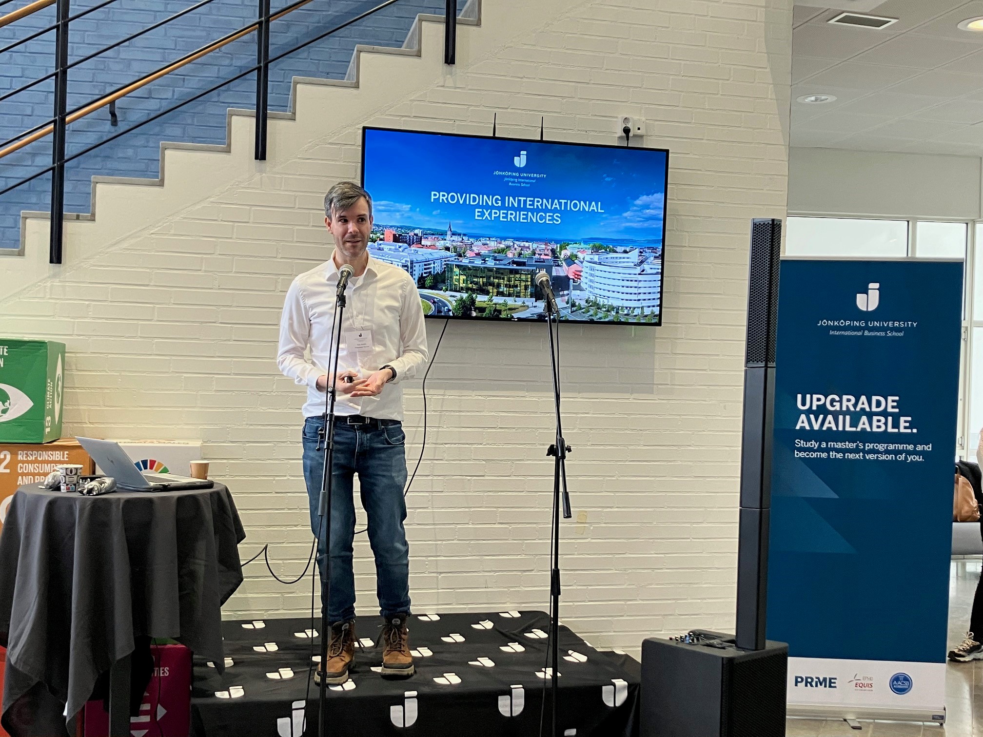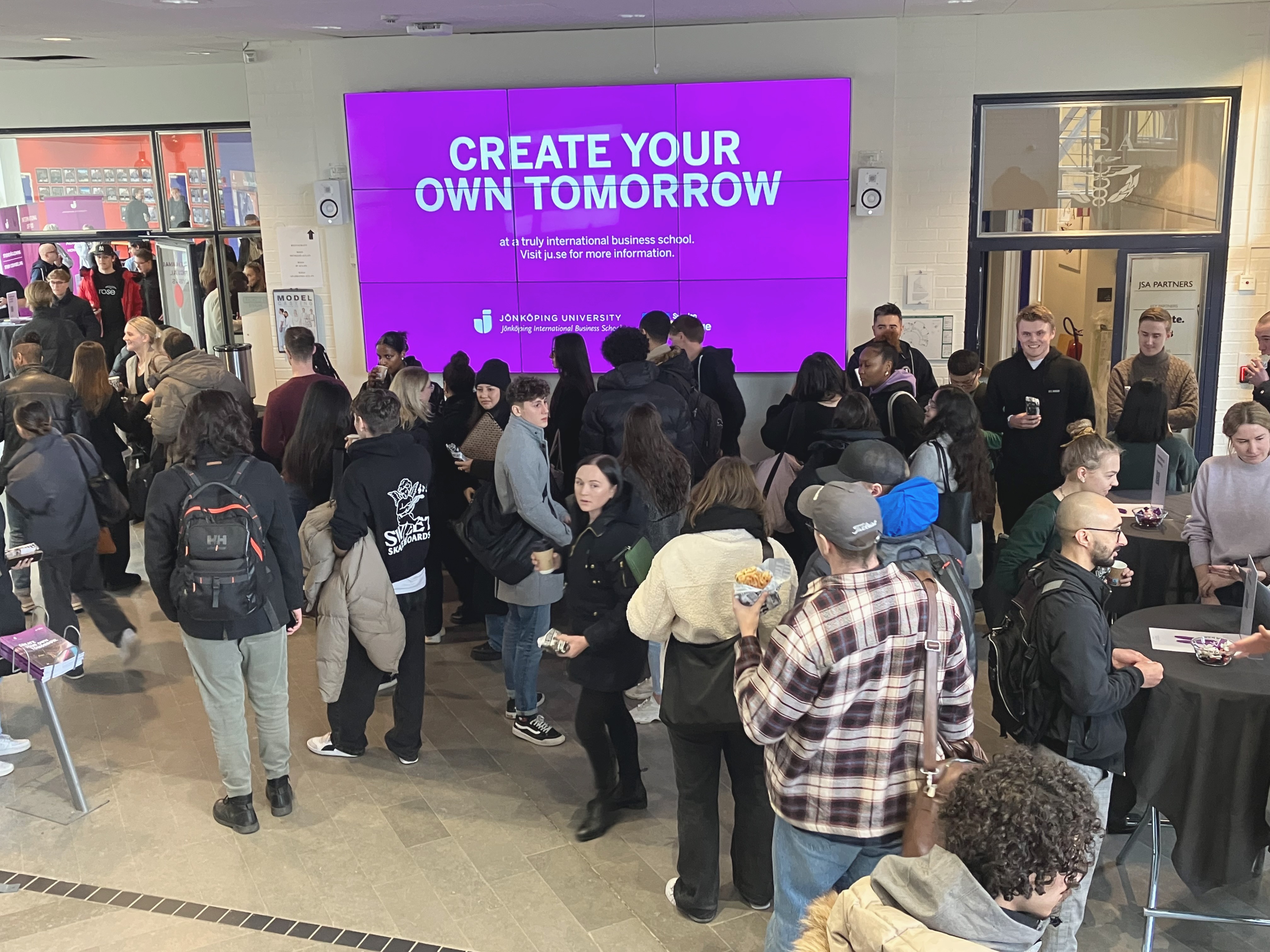 Det var trångt i lobbyn under JIBS Master Day. Förutom mässdelen fanns ett Speakers Corner där programansvariga höll sina programpresentationer. Ett uppskattat inslag var att även alumner gav sin syn på varför man ska läsa en master.